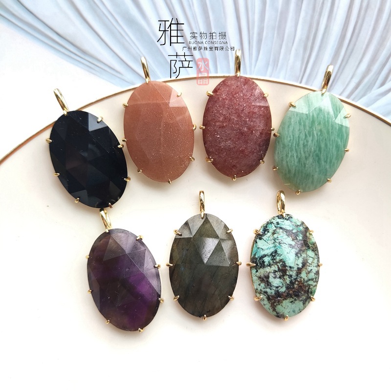 欧米のクロスボーダー楕円形水晶アマゾン石ペンダント女性wishクロスボーダー電気商がよく売れています。