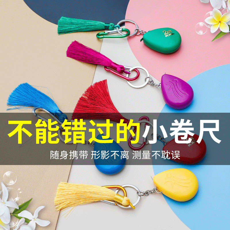 国境を越えて人気の水滴形2mミニ巻き尺キーホルダー携帯型ギフト定規量衣裁縫定規アクセサリー