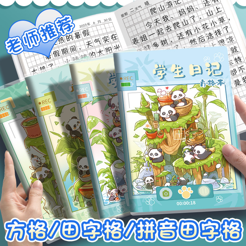 小学生1・2・3・4年生用日記帳、プラスチックカバー付きノート、方眼ノート、週間日記、作文帳