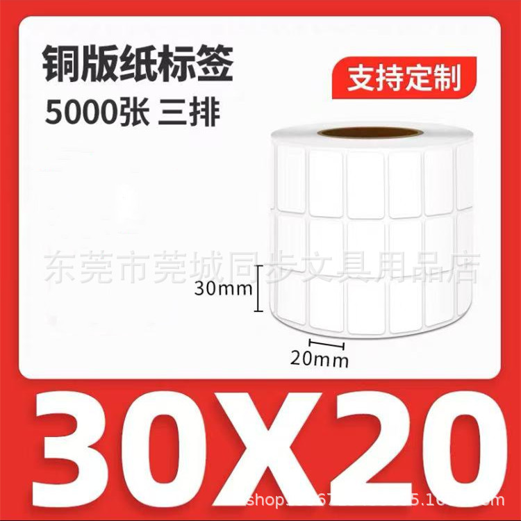 30*20*5000枚の三列銅版ステッカーラベルバーコード紙ラベル印刷シール物流宅配便シール