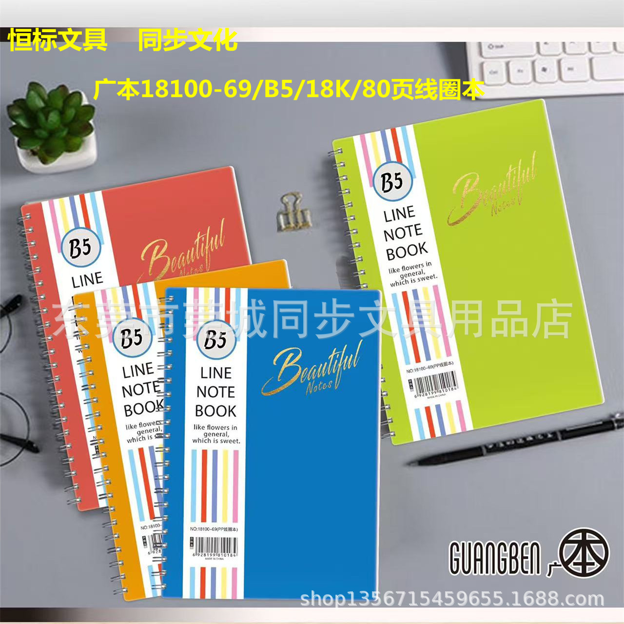 広本18100-69(18K) b 5/80ページのゴム面の双鉄の輪のノートの線巻のノートのルーズリーフ