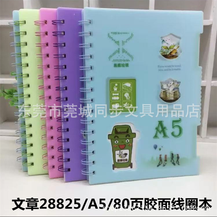 文章28825-59(25K)A5/80ページゴム面二重鉄輪ノート線本メモ帳バインダー本