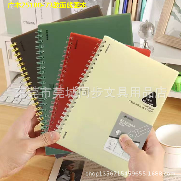 広本25100-73(25K)A5/80ページのゴム面の双鉄輪ノートの線巻ノートのルーズリーフ