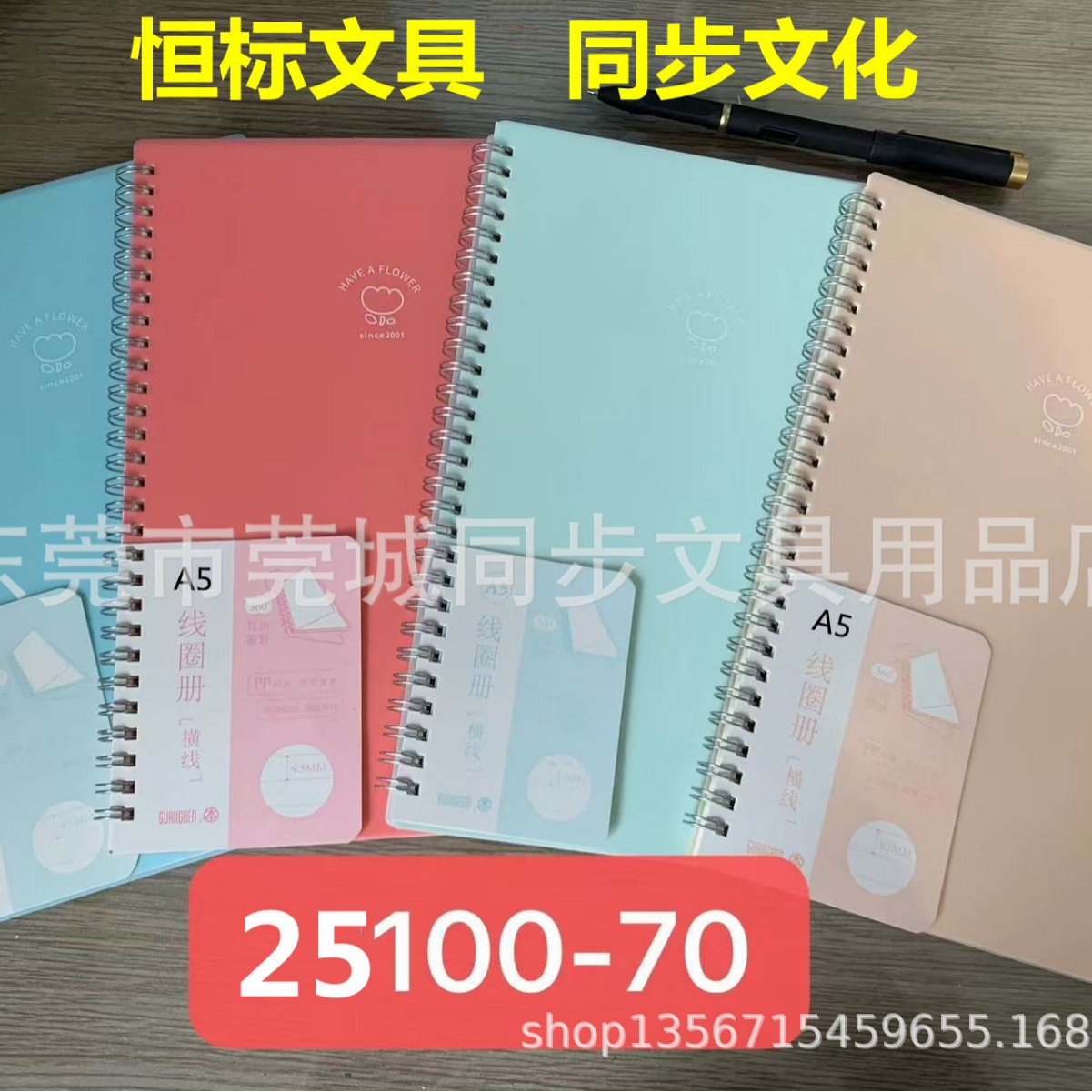 広本25100-70(25K)A5/80ページのゴム面の双鉄輪ノートの線巻ノートのルーズリーフ
