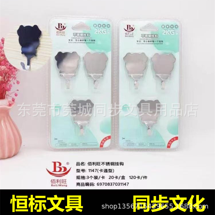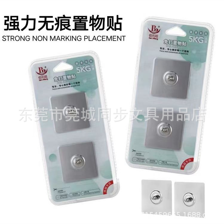 Bailiwang 1147 (3 個/カード) ステンレス鋼の自由な正方形の釘不要粘着フック (耐荷重 2KG)