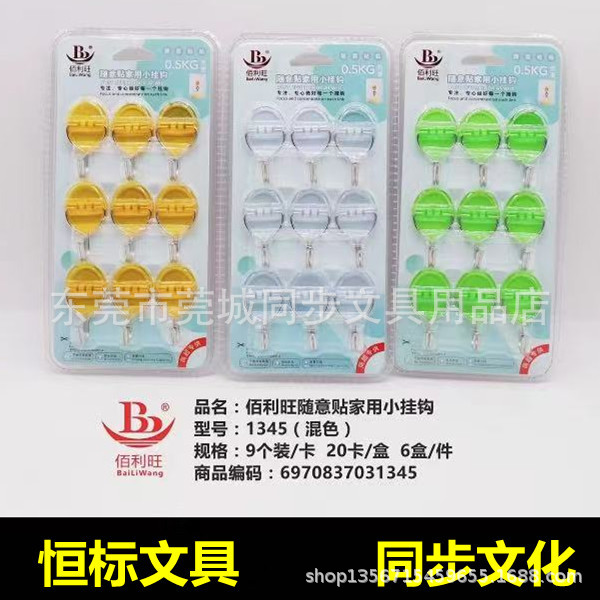 Bailiwang 1345 (9 個/カード) 透明カラーフリースタイル家庭用釘不要粘着フック (耐荷重 0.5KG)
