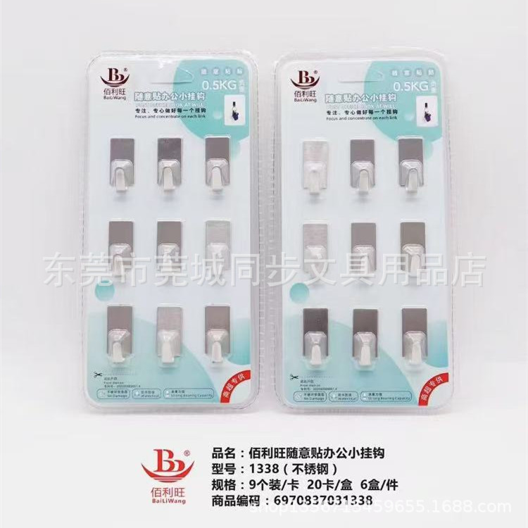 Bailiwang 1338 (9 個/カード) ステンレス鋼の家庭用釘不要粘着フック (耐荷重 0.5KG)