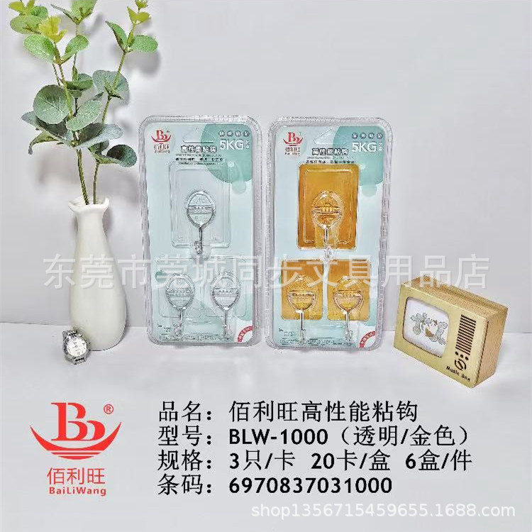 Bailiwang 1000 (3 個/カード) 透明ゴールデンフリーステッカーフック (耐荷重 5KG)