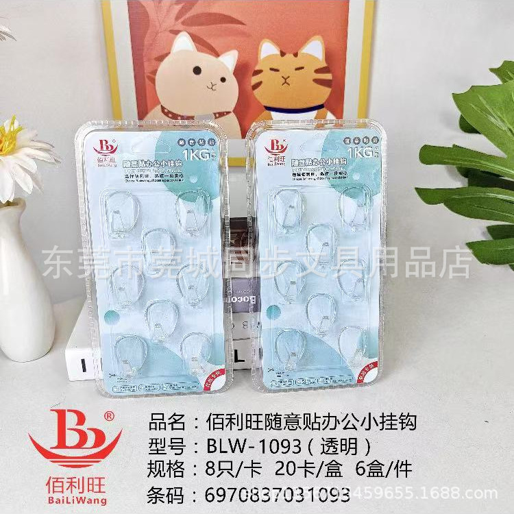 Bailiwang 1093 (8 個/カード) 透明カラーフリースティック家庭用釘不要粘着フック (耐荷重 1KG)