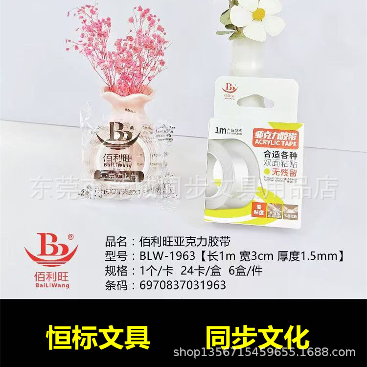 Bailiwang 1963 (幅 3 センチメートル * 厚さ 1.5 ミリメートル * 長さ 1 メートル) アクリル透明両面粘着テープ残留物なし