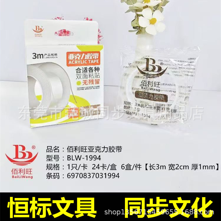 Bailiwang 1994 (幅 2 センチメートル * 厚さ 1.0 ミリメートル * 長さ 3 メートル) アクリル透明両面粘着テープ残留物なし