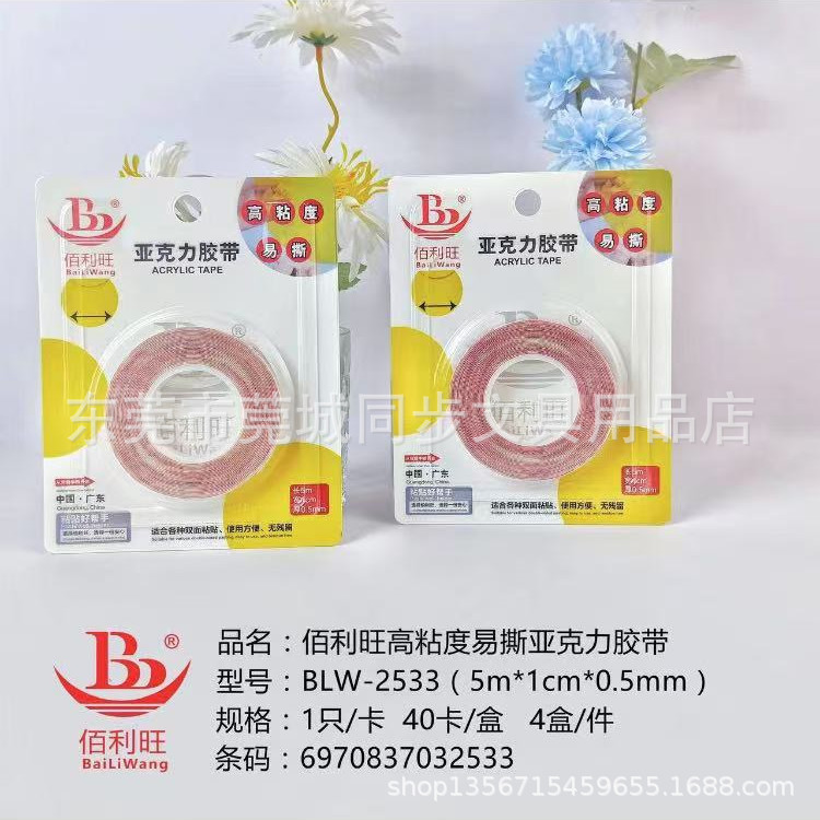Bailiwang 2533 (幅1cm*厚さ0.5mm*長さ5m) アクリル高粘度破れやすい両面テープ単ロール