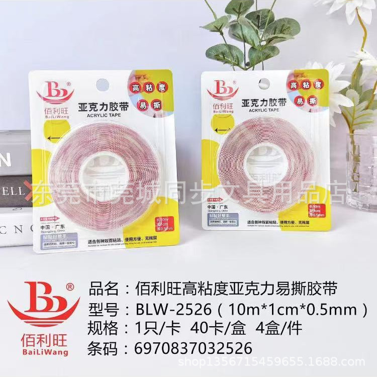Bailiwang 2526 (幅1cm*厚さ0.5mm*長さ10m) アクリル高粘度で破れやすい両面テープ 1巻