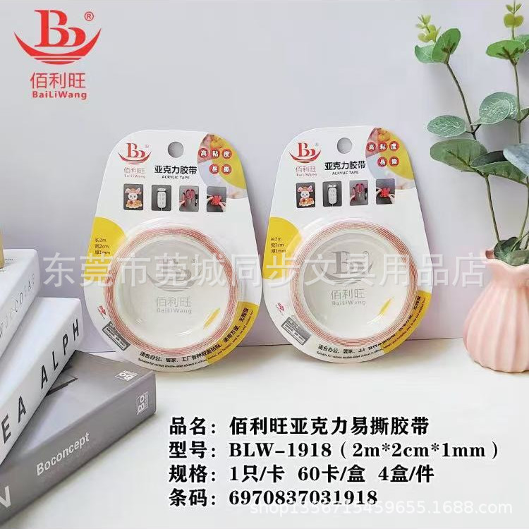 Bailiwang 1918 (幅2cm*厚さ1mm*長さ2m) アクリル高粘度試験用破れやすいテープ 両面メッシュテープ