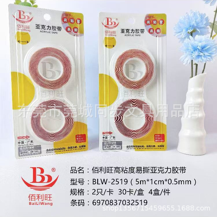 Bailiwang 2519 (幅1cm×厚さ0.5mm×長さ5m) アクリル高粘度破れやすい両面テープ 2巻