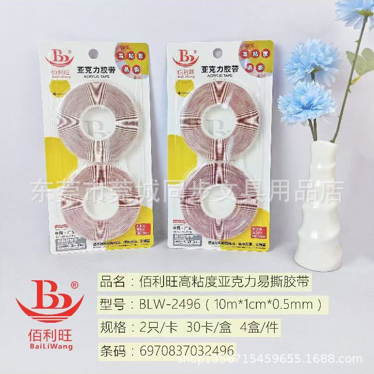 Bailiwang 2496 (幅1cm*厚さ0.5mm*長さ10m) アクリル高粘度で破れやすい両面テープ 2巻