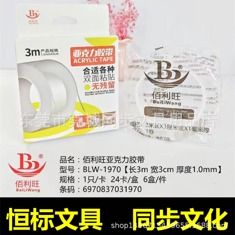 Bailiwang 1970 (幅 3 センチメートル * 厚さ 1.0 ミリメートル * 長さ 3 メートル) アクリル透明両面粘着テープ残留物なし