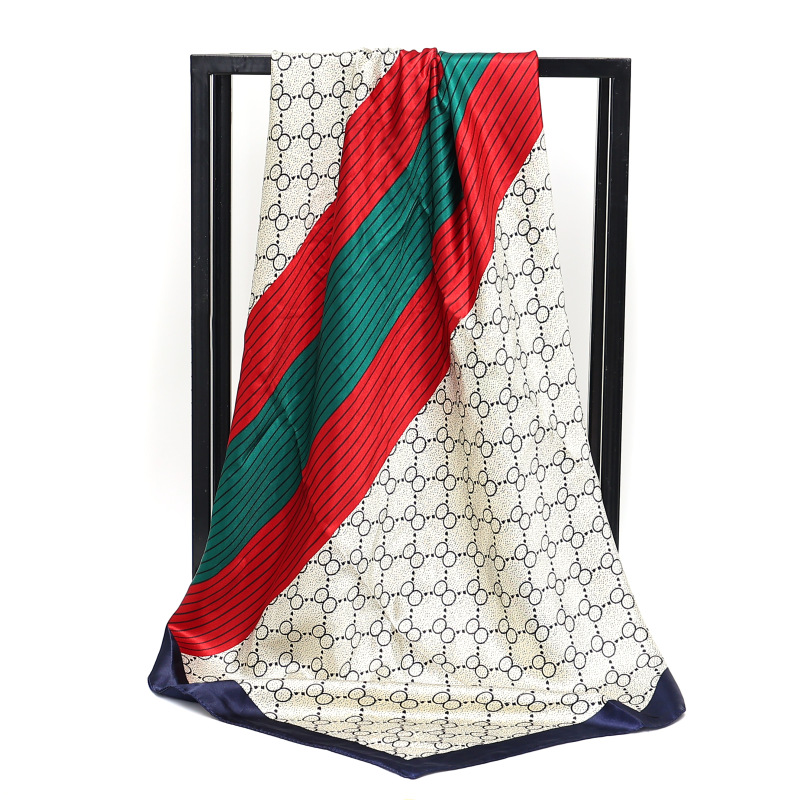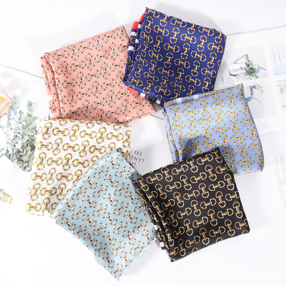 国境を越えたファッションカジュアルなスカーフ90cmチェーンプリントの大きなスカーフのサテンの色の小さなスカーフ