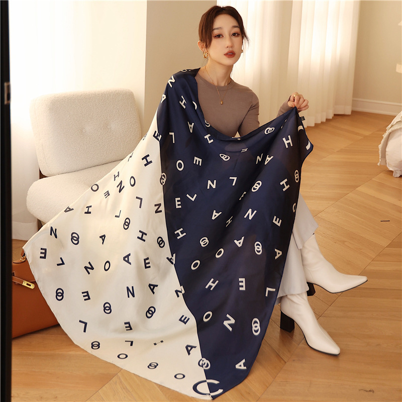 アルファベットプリントのシルクタオル110cmサテンの模造シルクタオル旅行日焼け止めストールの震え音