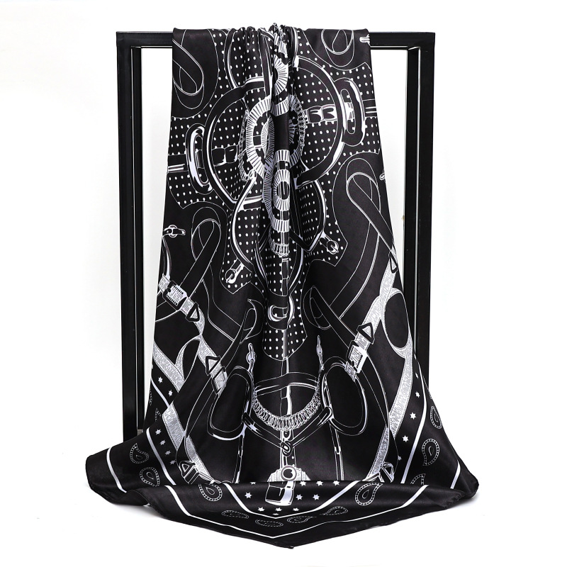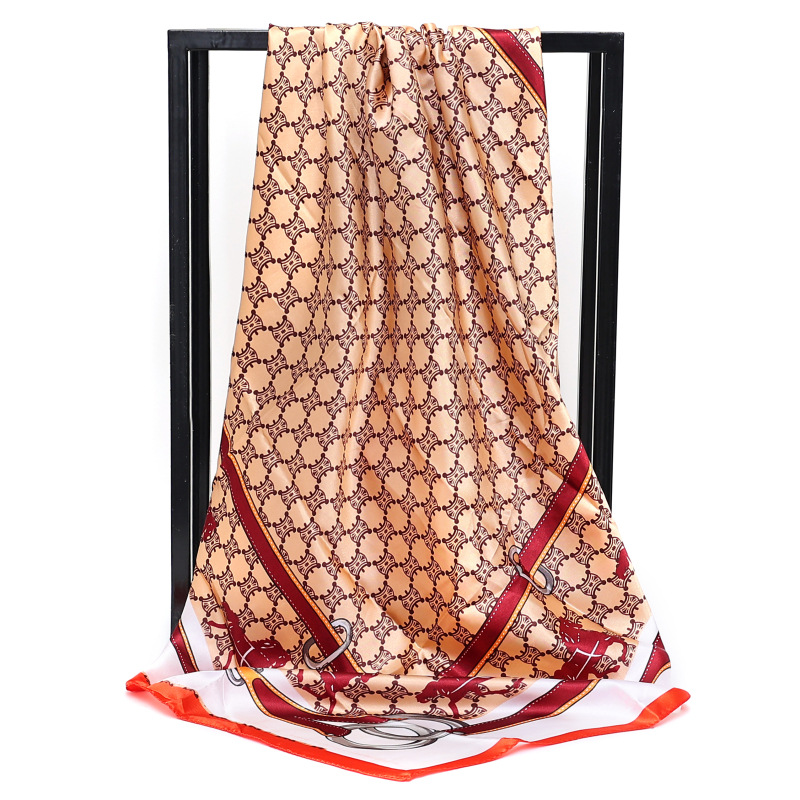 90x90cmのシミュレーションシルクタオルのクロスボーダーの商品のレトロなチェーンのプリントの大きい方のタオルのカジュアルな頭巾のヘアバンドの代行