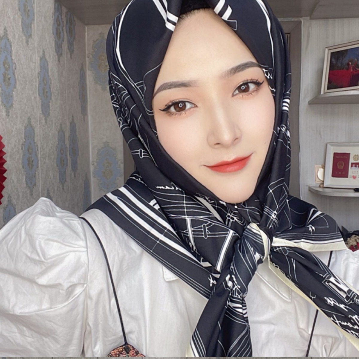 ネット紅ins襟巾90cm綾織りストール春夏新大方巾韓国版シミュレーションシルクプリント日焼け止めスカーフ