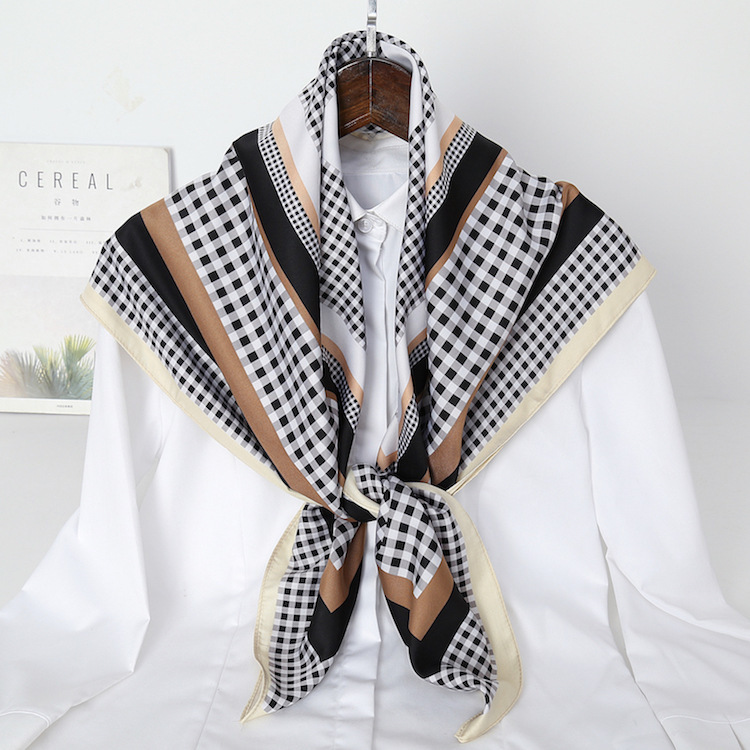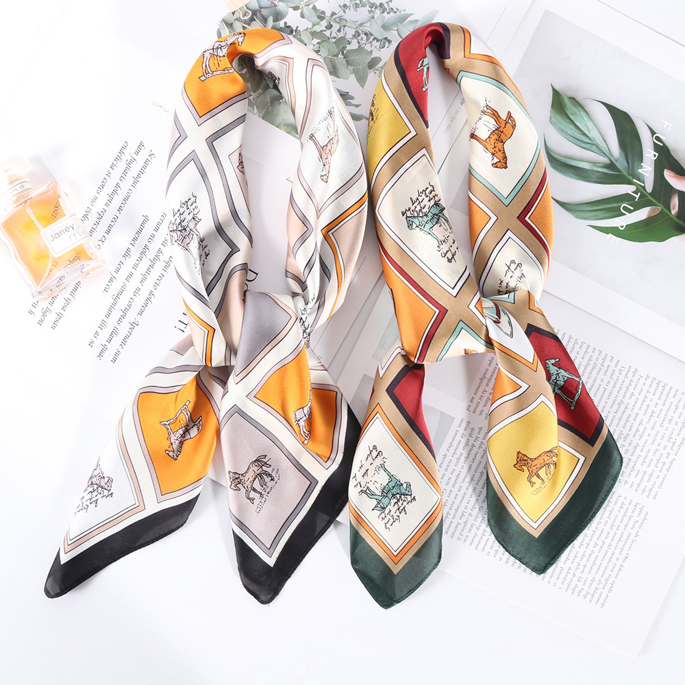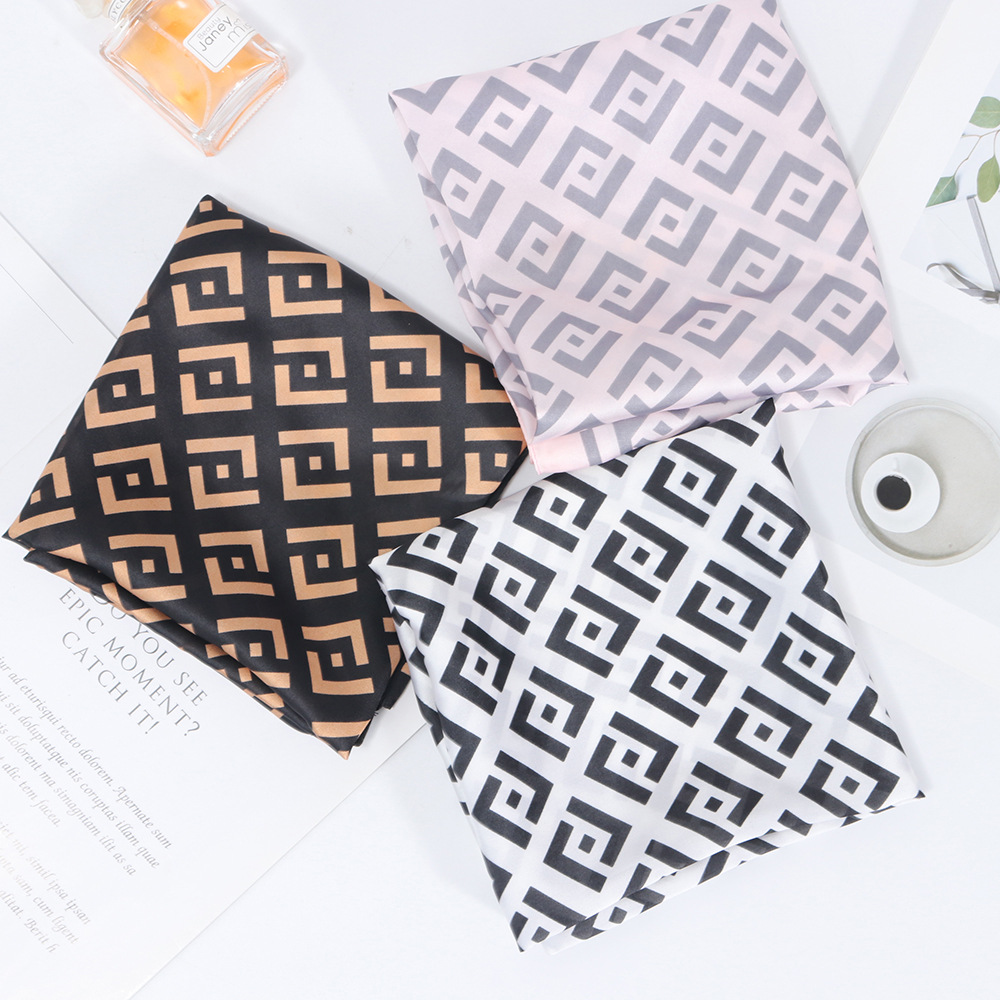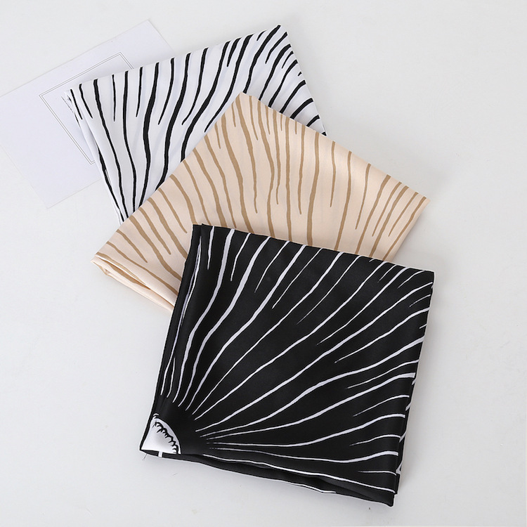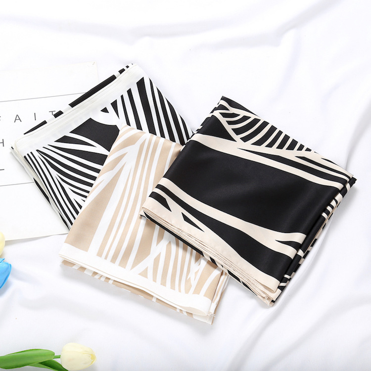 韓国版文芸ins小方巾70*70cm幾何学プリント模造シルクタオル紐髪帯胸飾りマフラー
