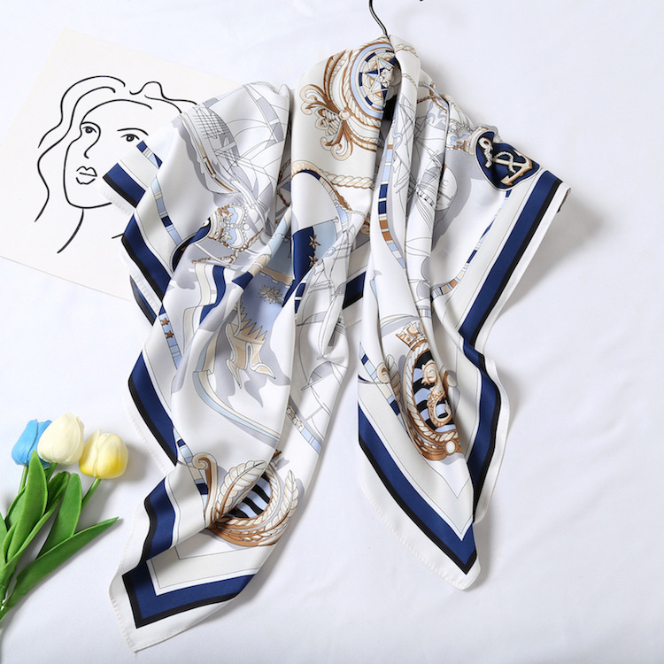 欧米のツイルのプリントの90cmの大きい方の巾のクロスボーダーの速売通の女性のスカーフの船の錨のプリントのファッションのストールの卸売り
