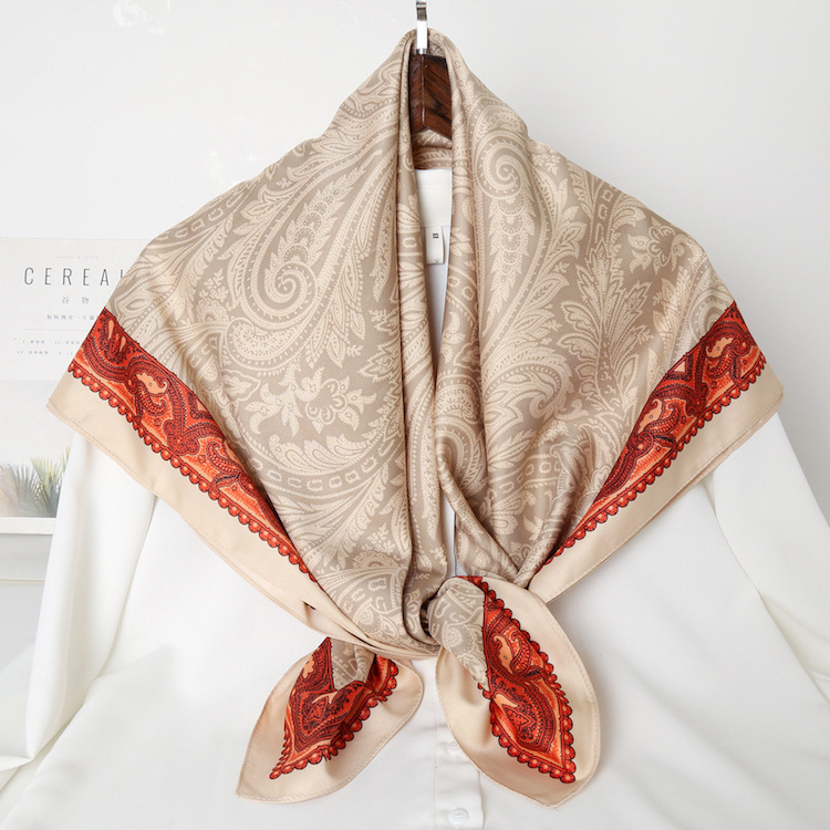 軽豪華ファッションシルクタオル90cm綾織り生地プリント大方巾ドバイ旅行日焼け止めストールスカーフ