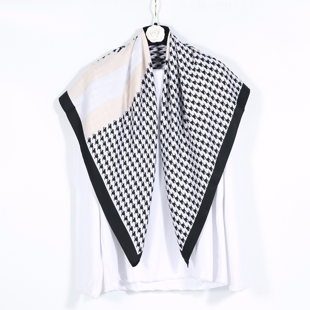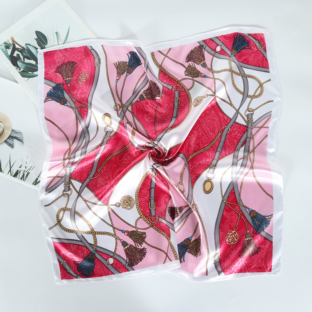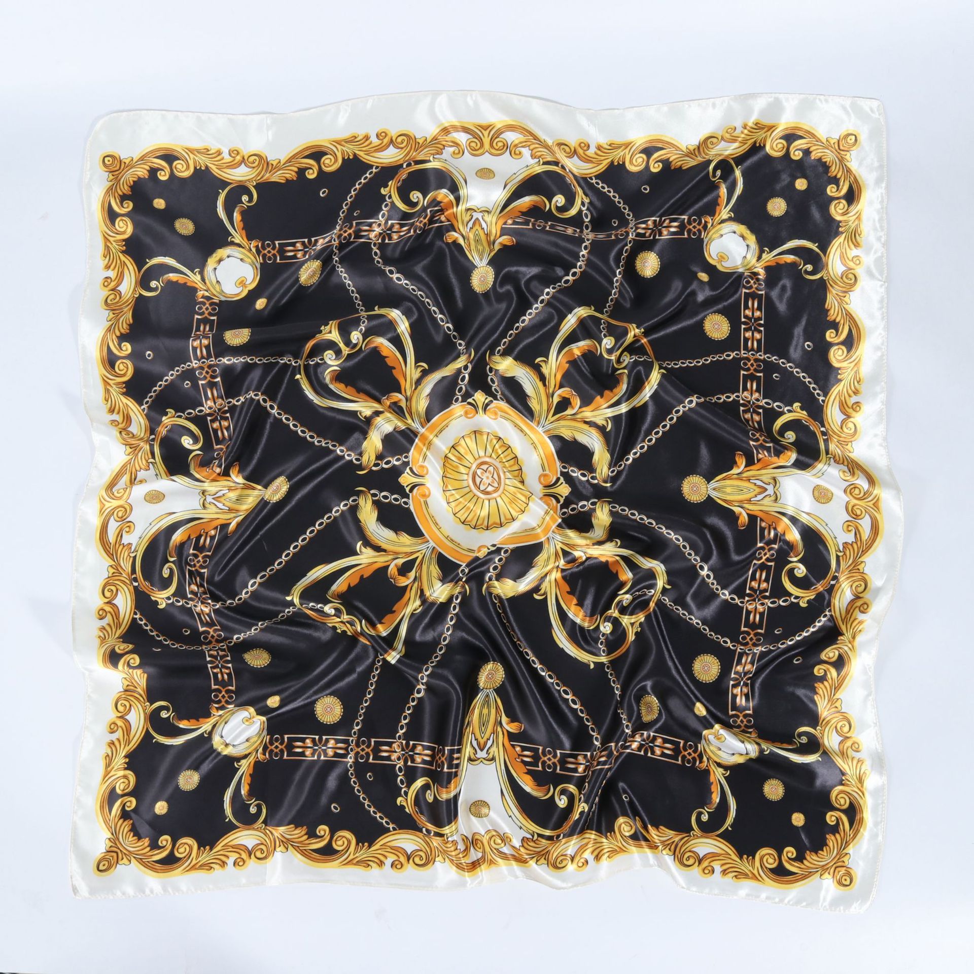 Tiktokネットの赤いガーゼのサテンの色のシルクのタオルの90cmの大きい方のタオルのファッションのショールのチェーンのプリントの越境の商品の供給源