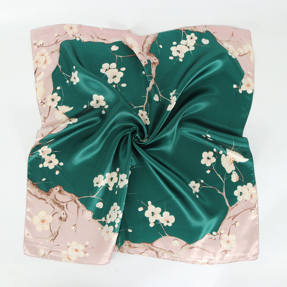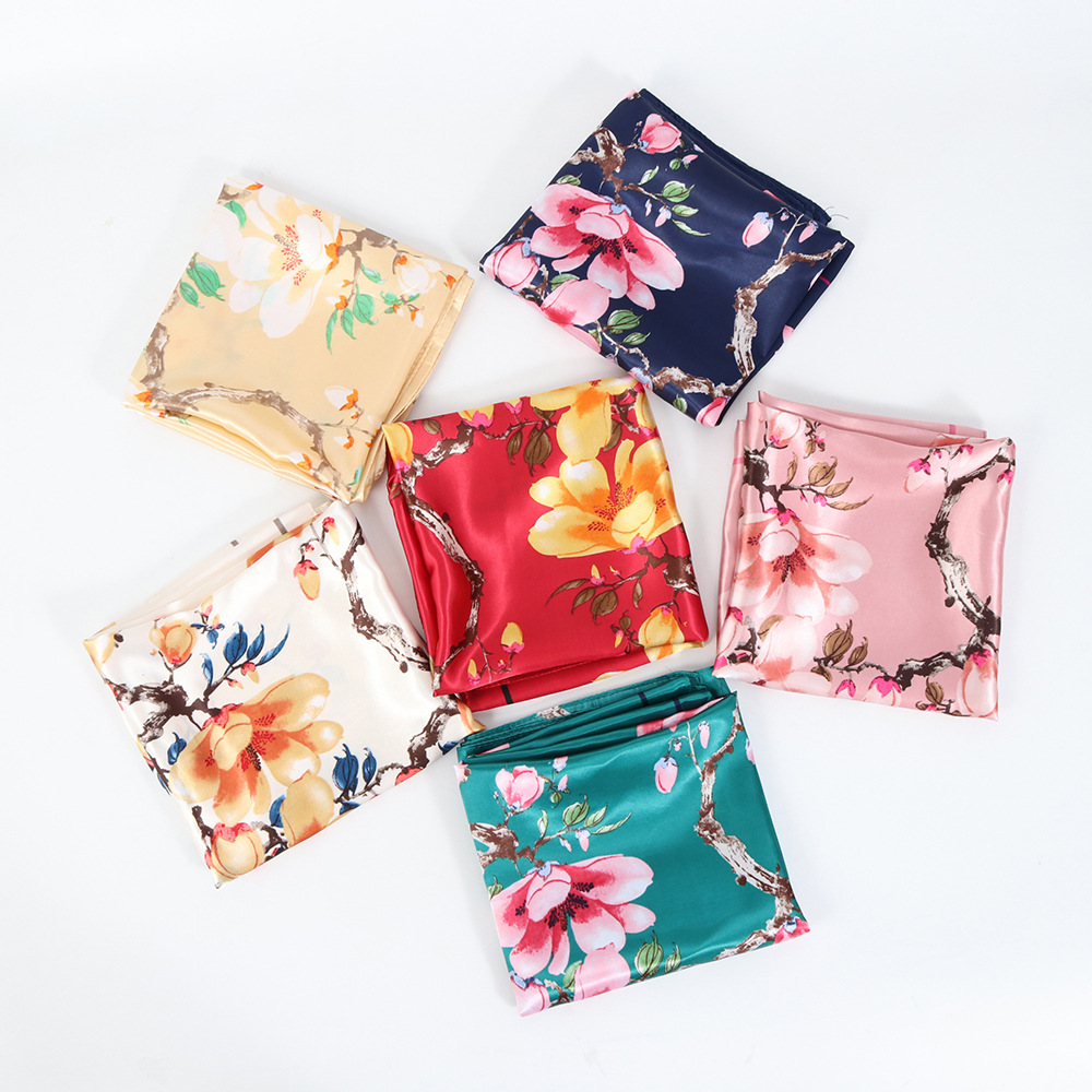 春夏レディーススカーフ花柄プリントショール90cmサテン大角巾ol衿巾エレガントギフトシルクスカーフ