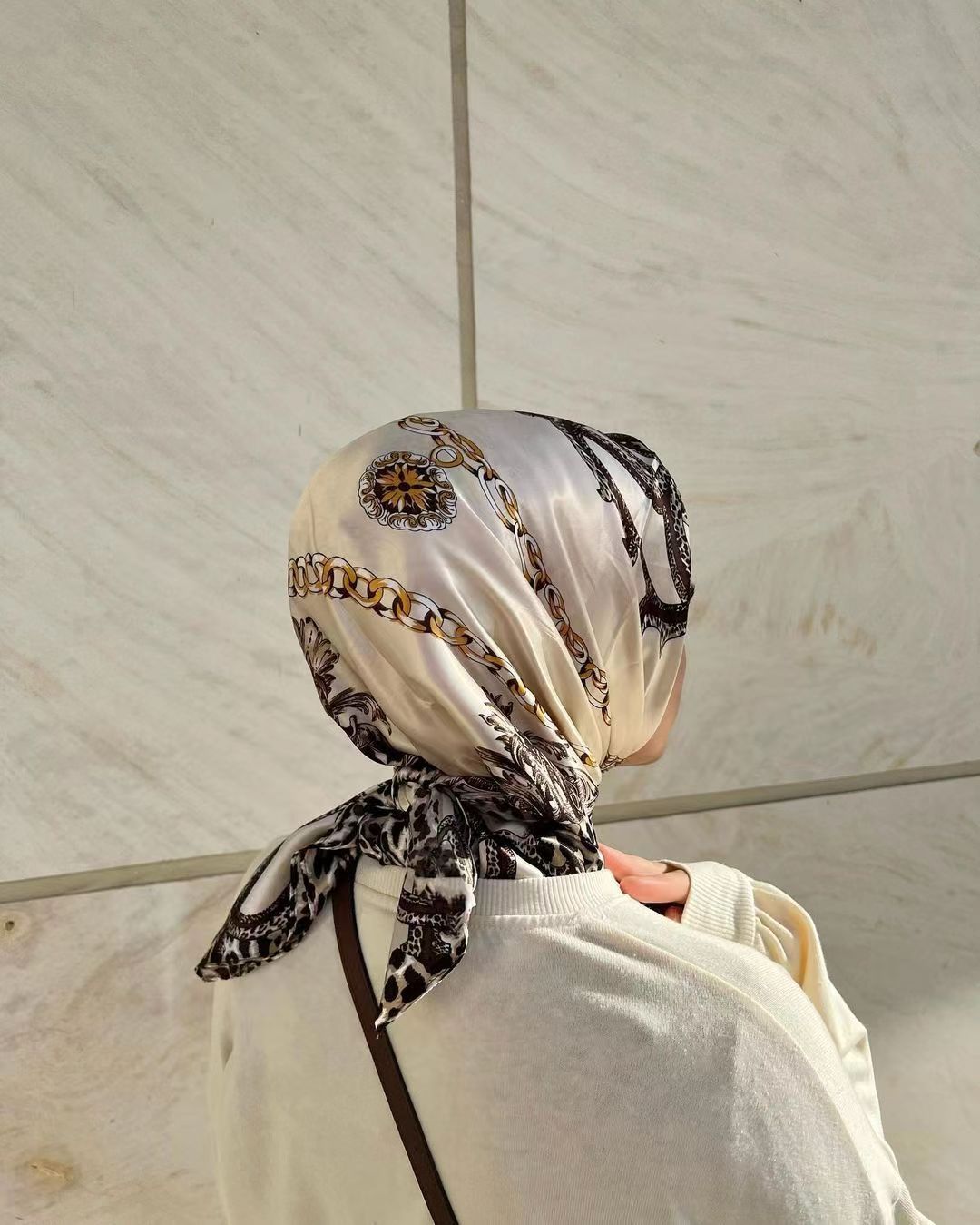 Ins同型豹柄チェーンプリントスカーフ90*90cmサテン大方巾アマゾンカジュアルスカーフscf