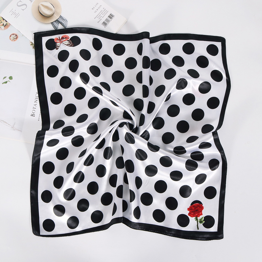 ファッション女性の優雅なシルクタオルネット赤の小さいスカーフ60*60cmのサテンの四角いタオルの波点のプリントのアマゾンのscar