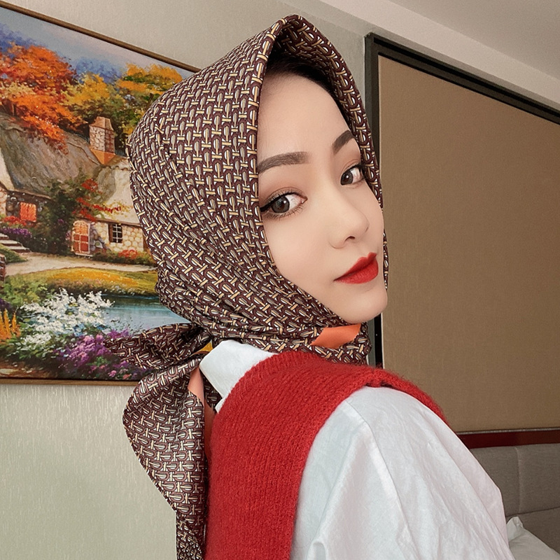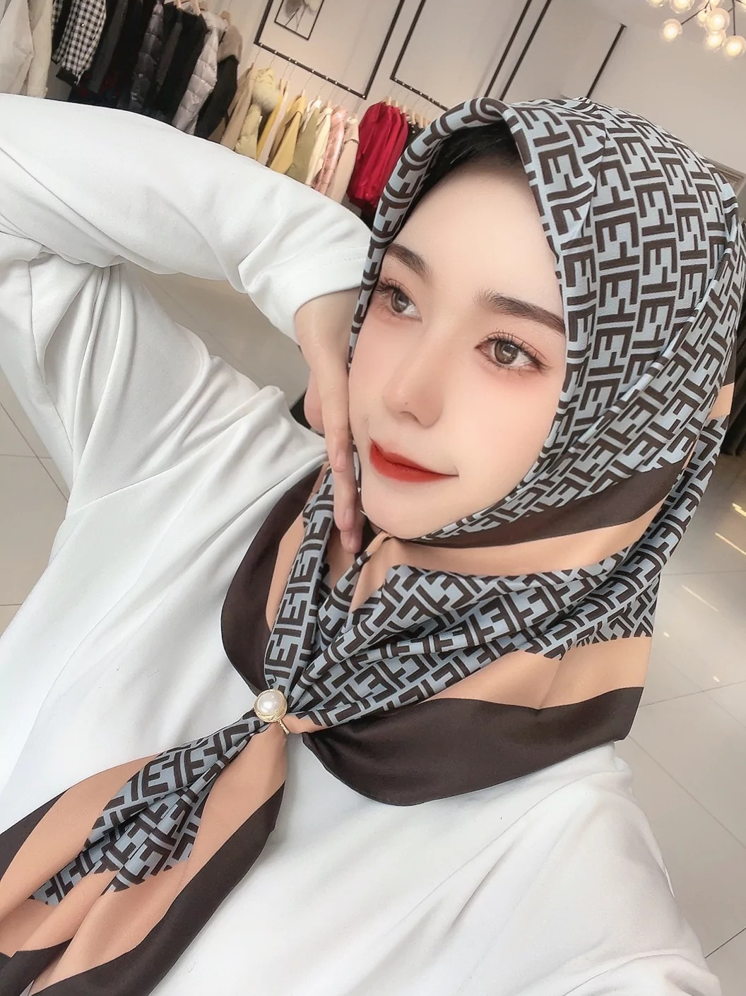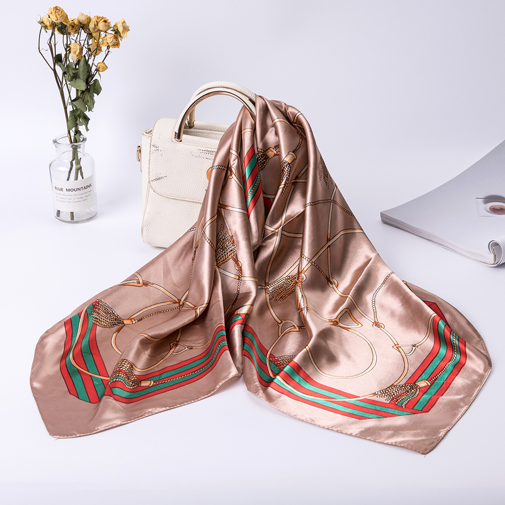 新品90*90cm大きめスカーフチェーンプリントシルクスカーフレディースカジュアルヘッドスカーフマレーシアバウォール