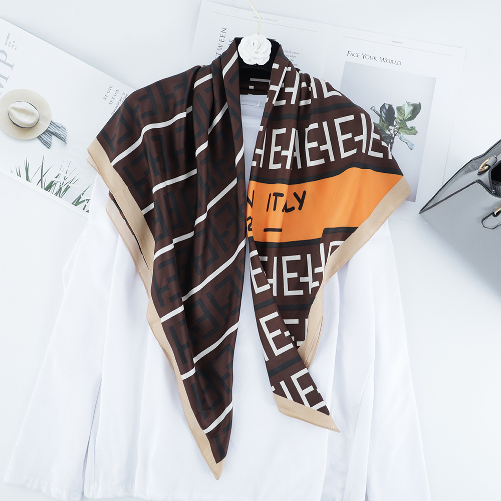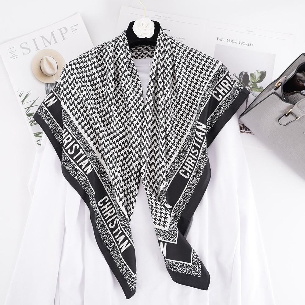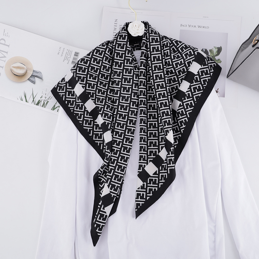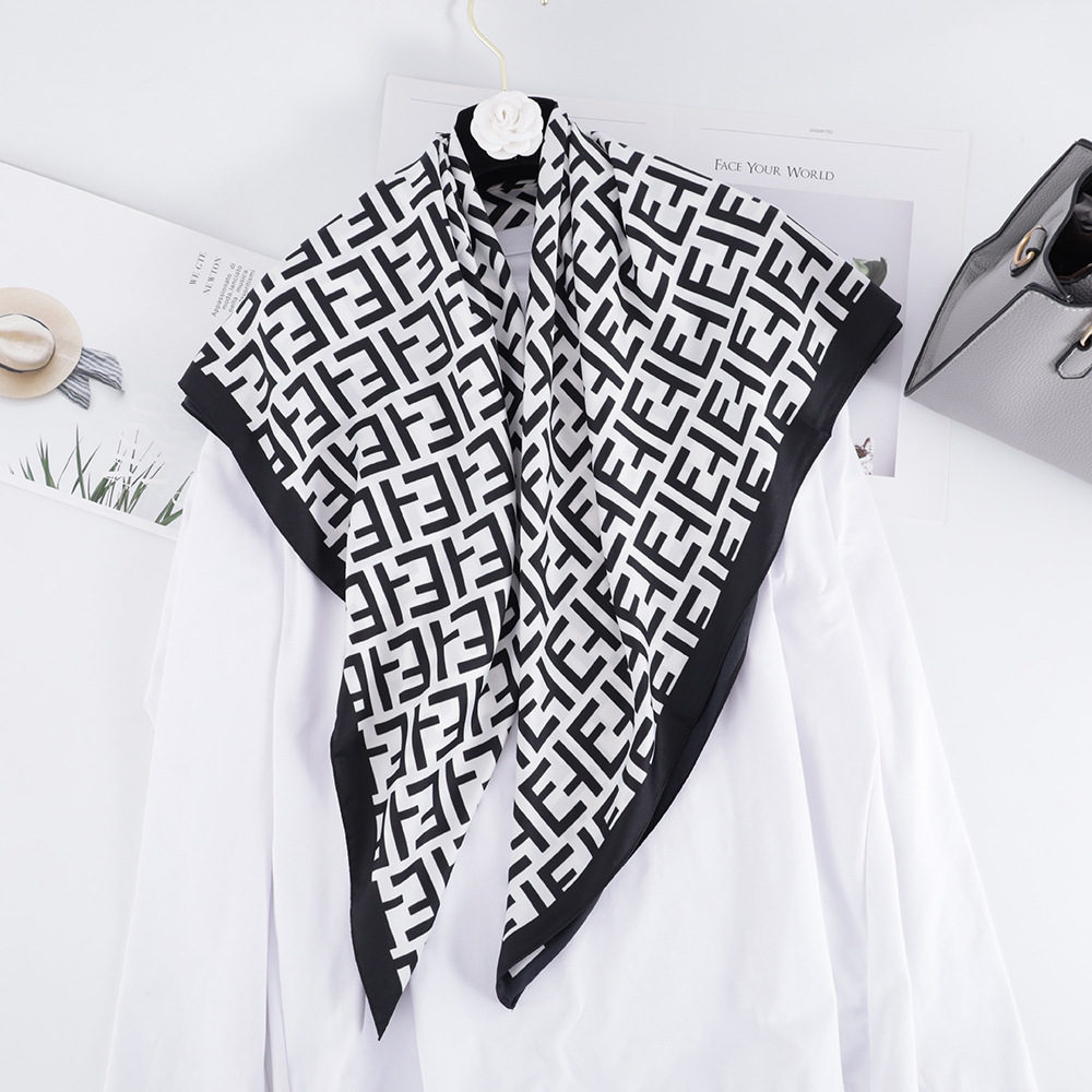 白黒efアルファベットプリントシルクタオル女90*90cm細いツイルサテンのスカーフ馬来カジュアルスカーフ卸売り