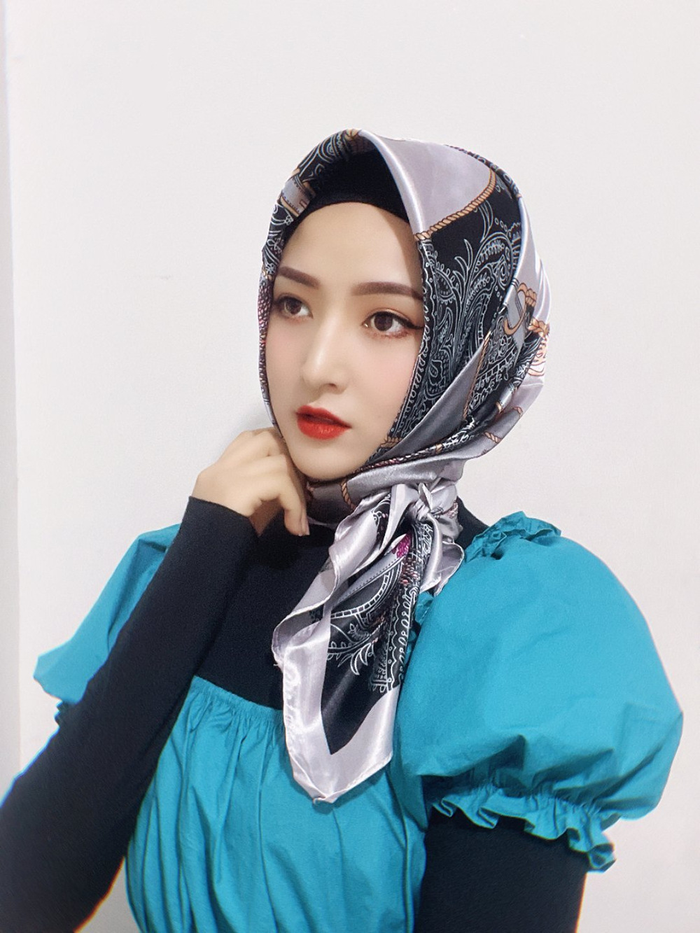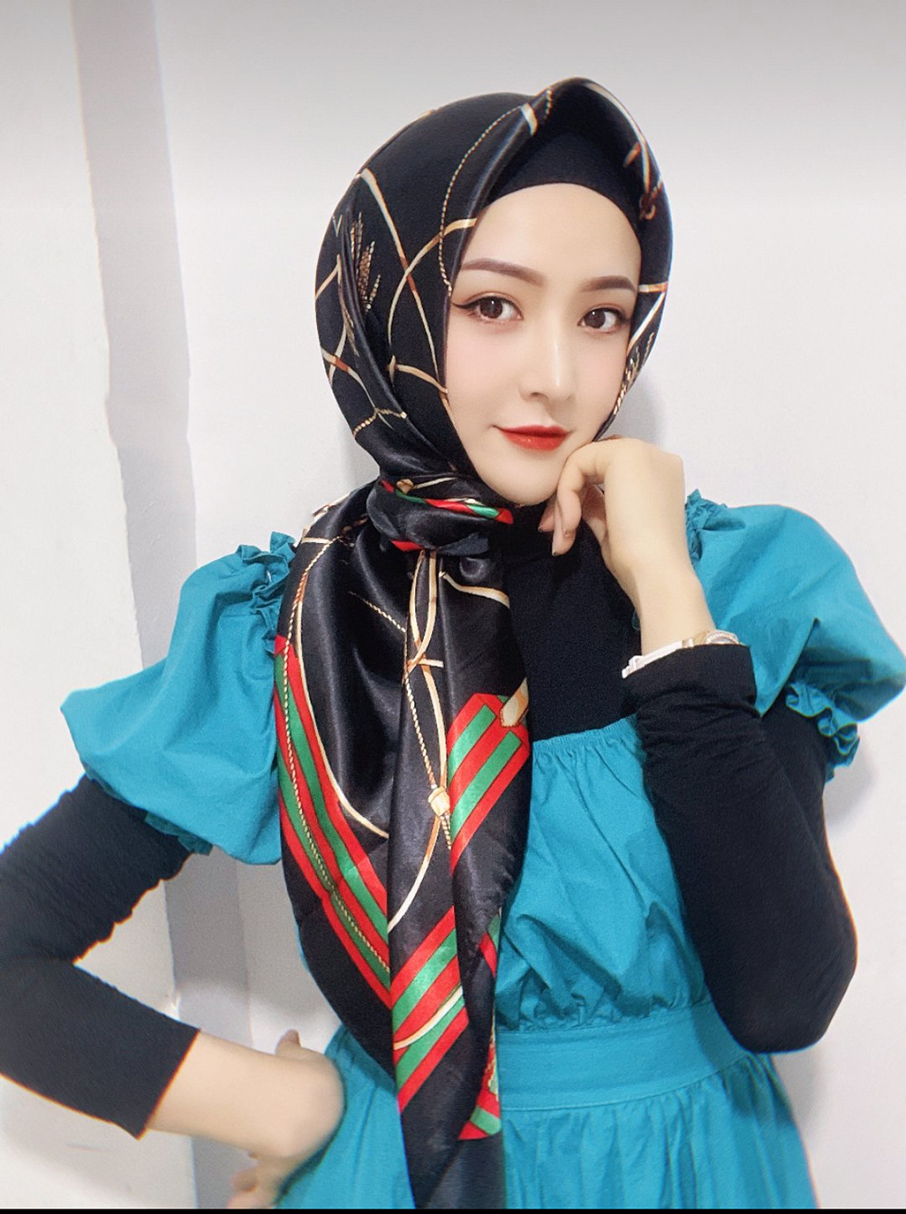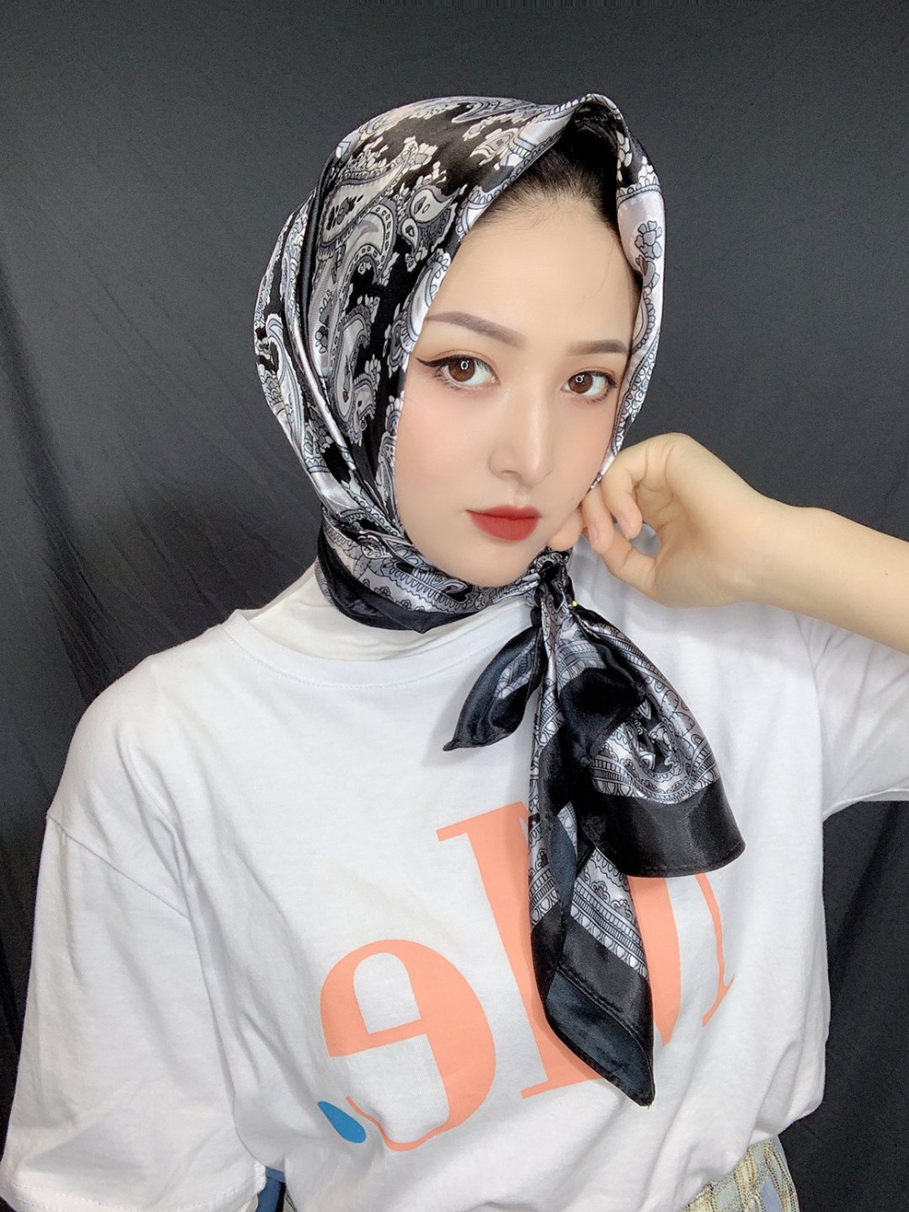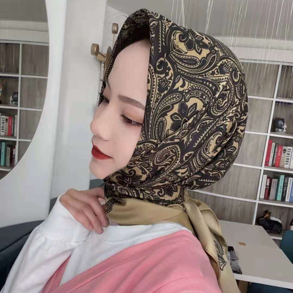 ドバイカジュアルスカーフ90*90cm大方巾ツイルサテンプリントシルクスカーフ女性マフラーストール工場の供給