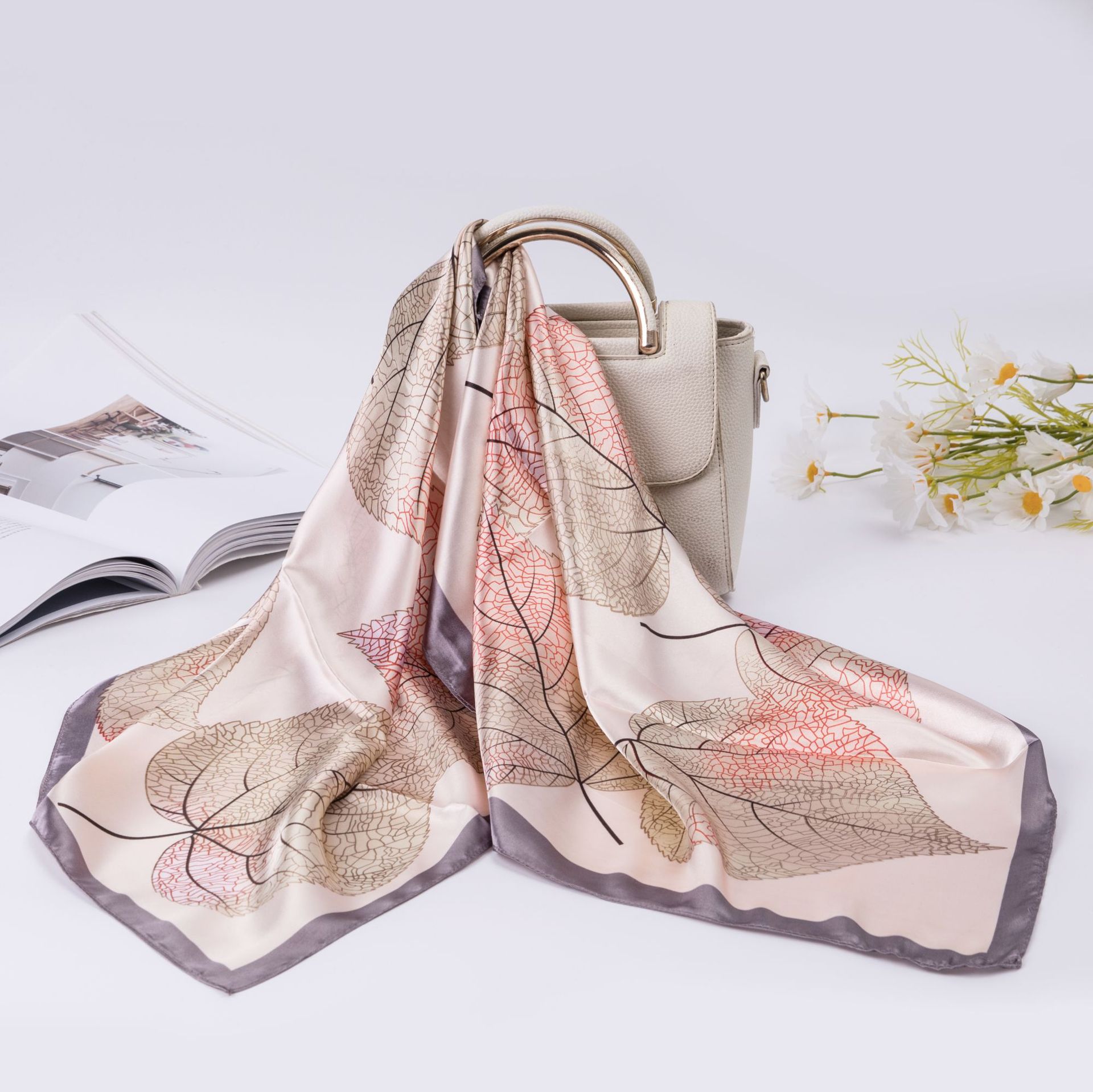 素雅葉プリントシルクタオル女性対外貿易マフラー90*90cmサテン色丁大方巾カジュアルスカーフ