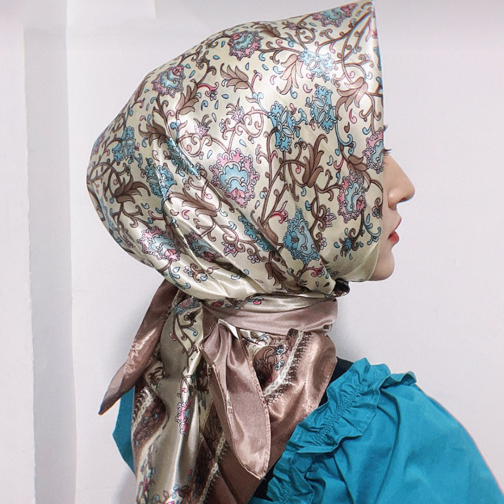 Shopee90 cm色丁プリント大方巾欧米シルクマフラープレゼントマレーシアスカーフ