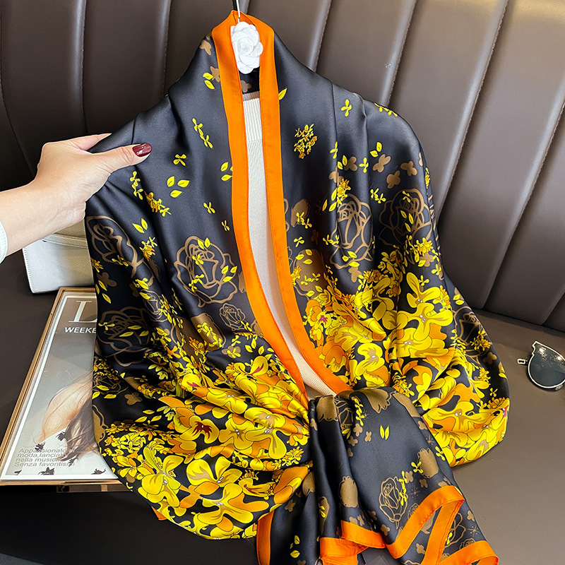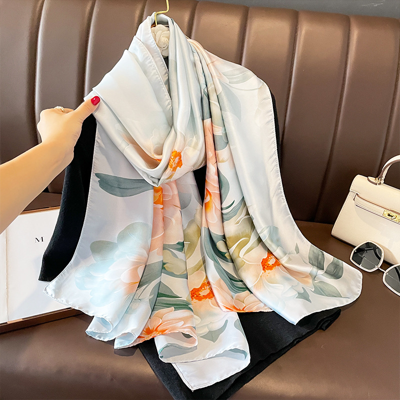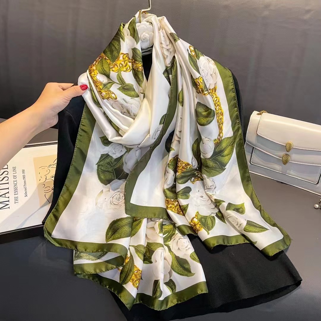 2023韓国版ファッション長型シルクタオル春秋装飾シミュレーションシルク春夏日焼け止めショールマフラー両用
