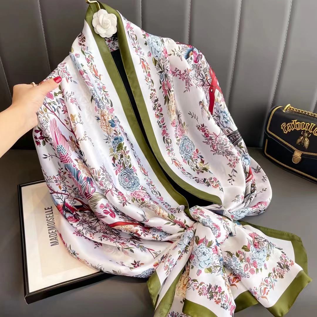 2023春夏の新型女性90cm日焼け止めマントスカーフのスカーフのスカーフのシミュレーションシルクのスカーフのスカーフのスカーフ