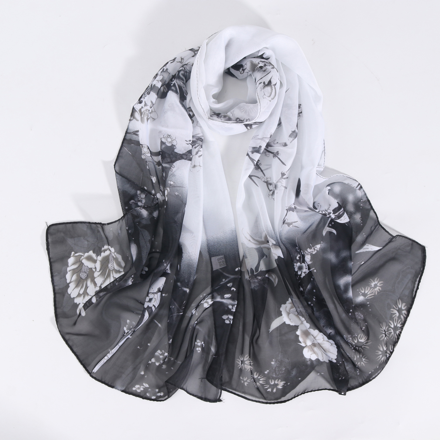 クロスボーダーの春の新型の人気カササギのプリントのシルクタオルの女性のシフォンのスカーフの夏の組み合わせの日焼け止めのショールのスカーフ