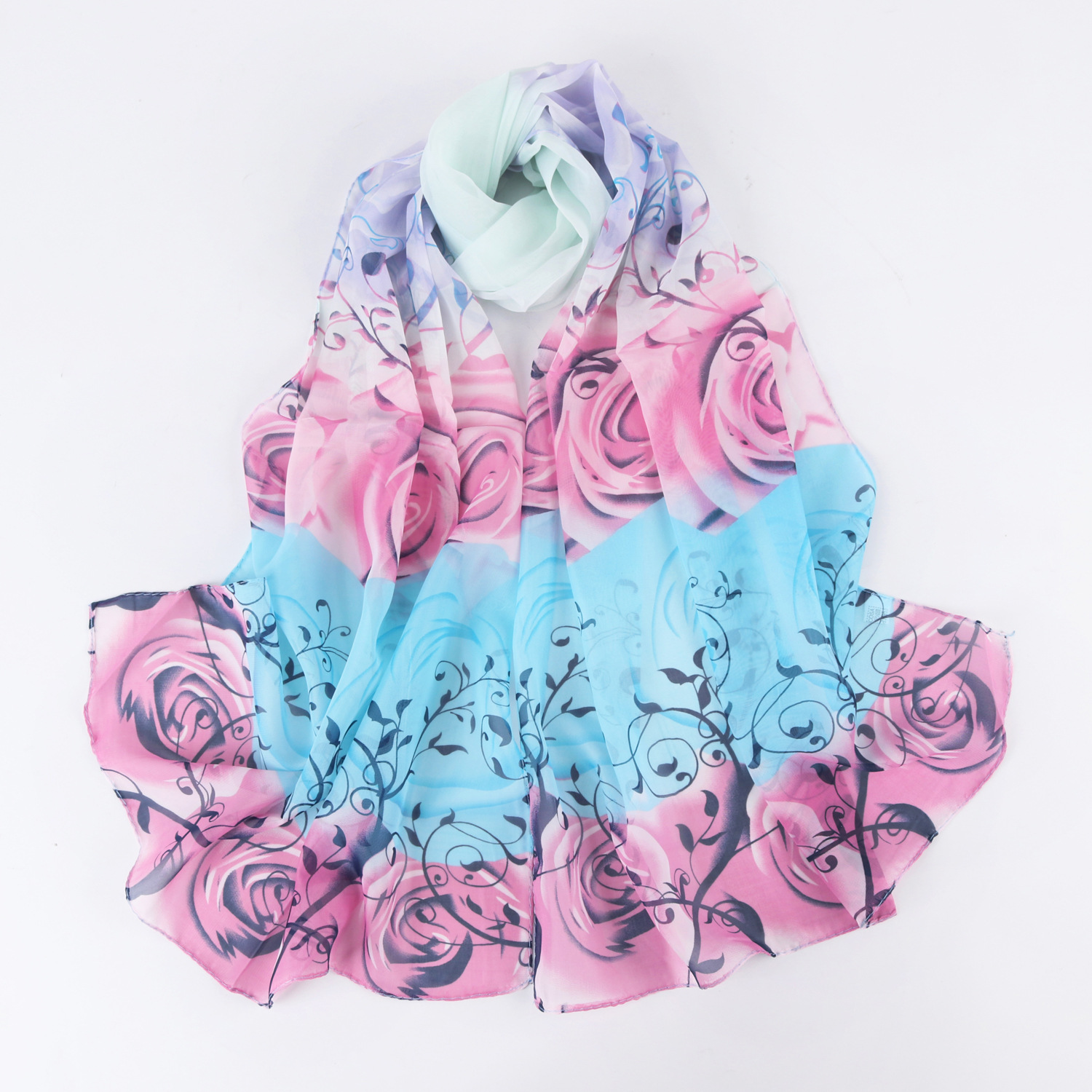 新しい春の木の葉牡丹プリントのシルクタオルのシフォンのマフラーの女性の夏の薄いタイプのシルクタオルの日焼け止めのストールの卸売り