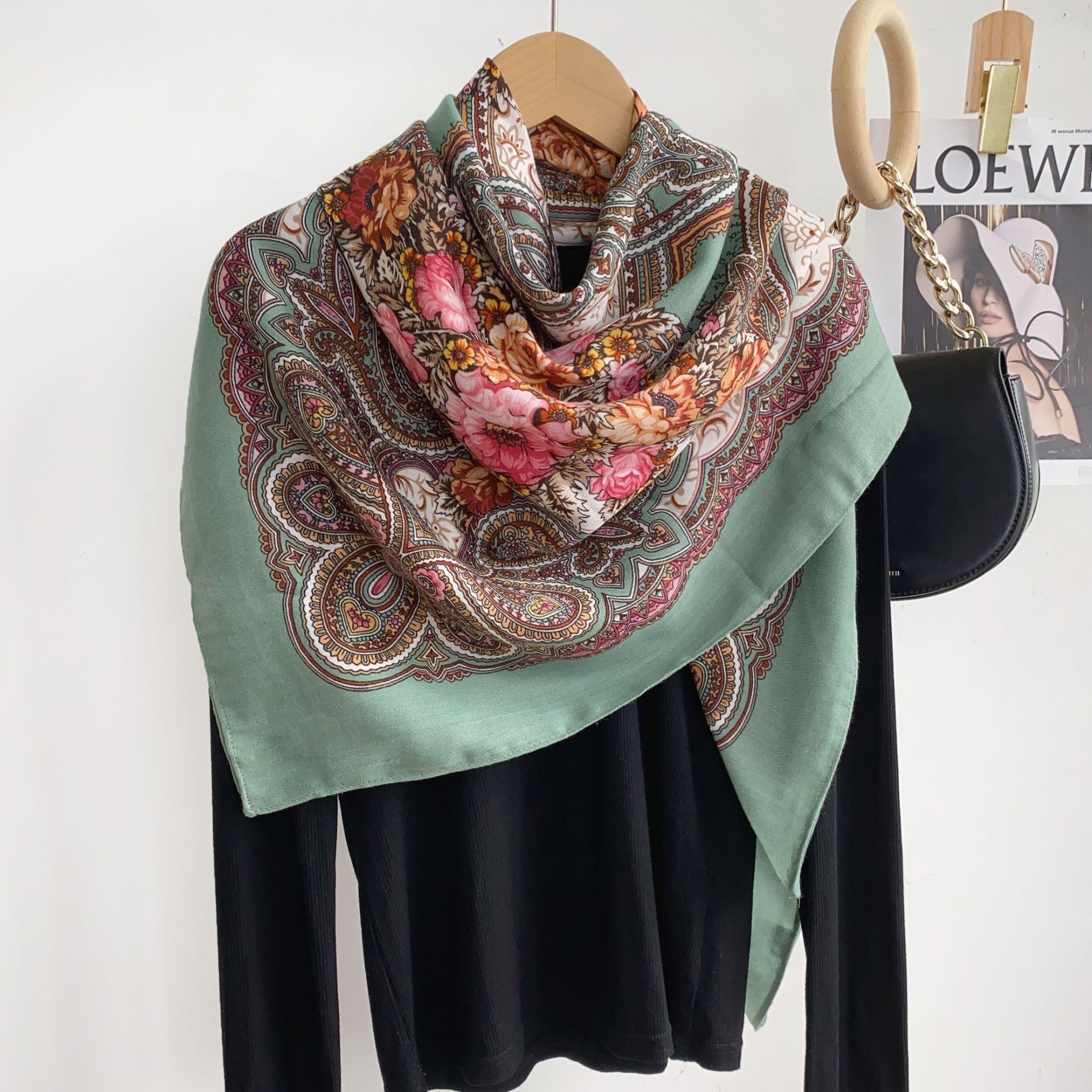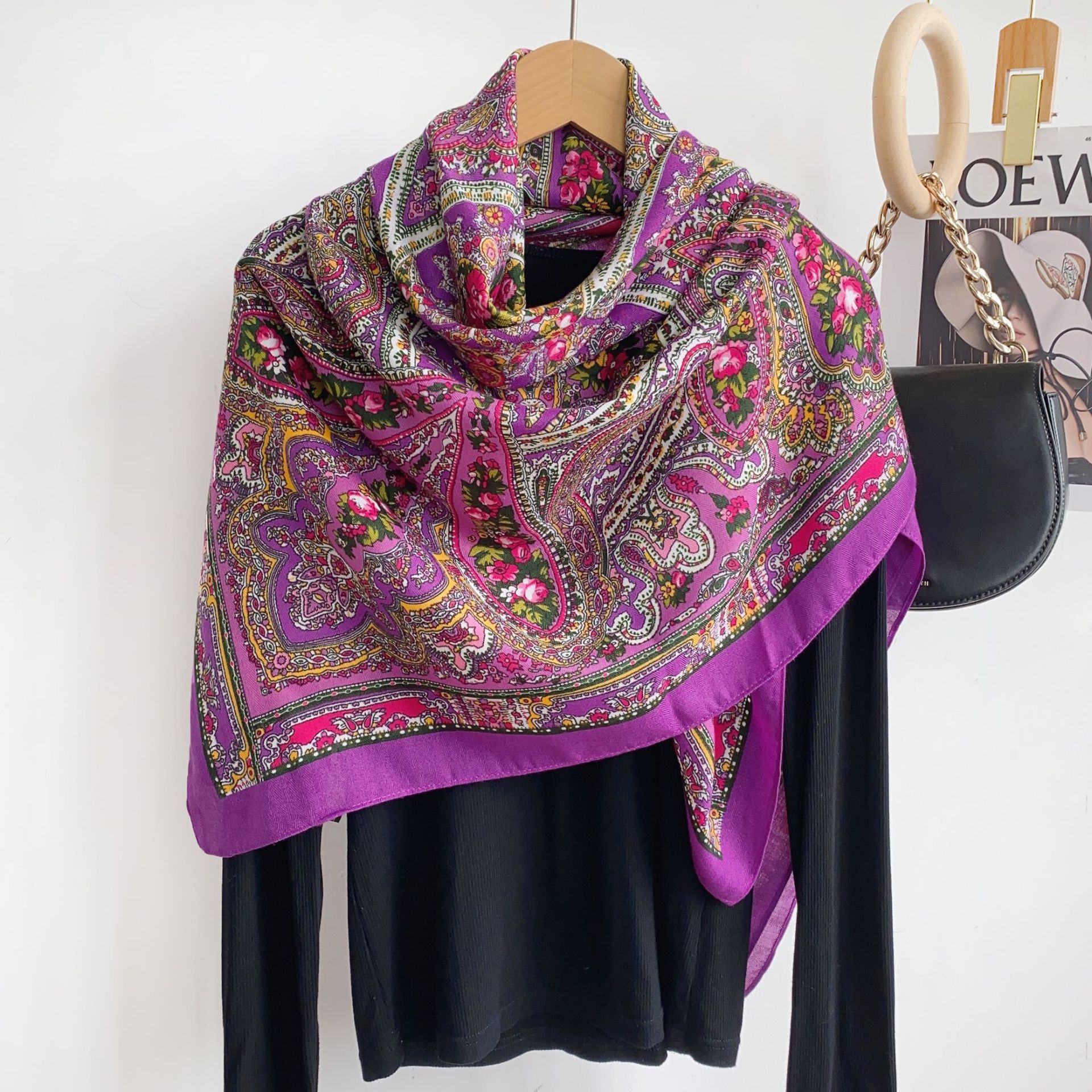 レトロ腰果綿麻大方巾110*110cmドバイ頭巾日焼け止めストール対外貿易マフラー秋冬新