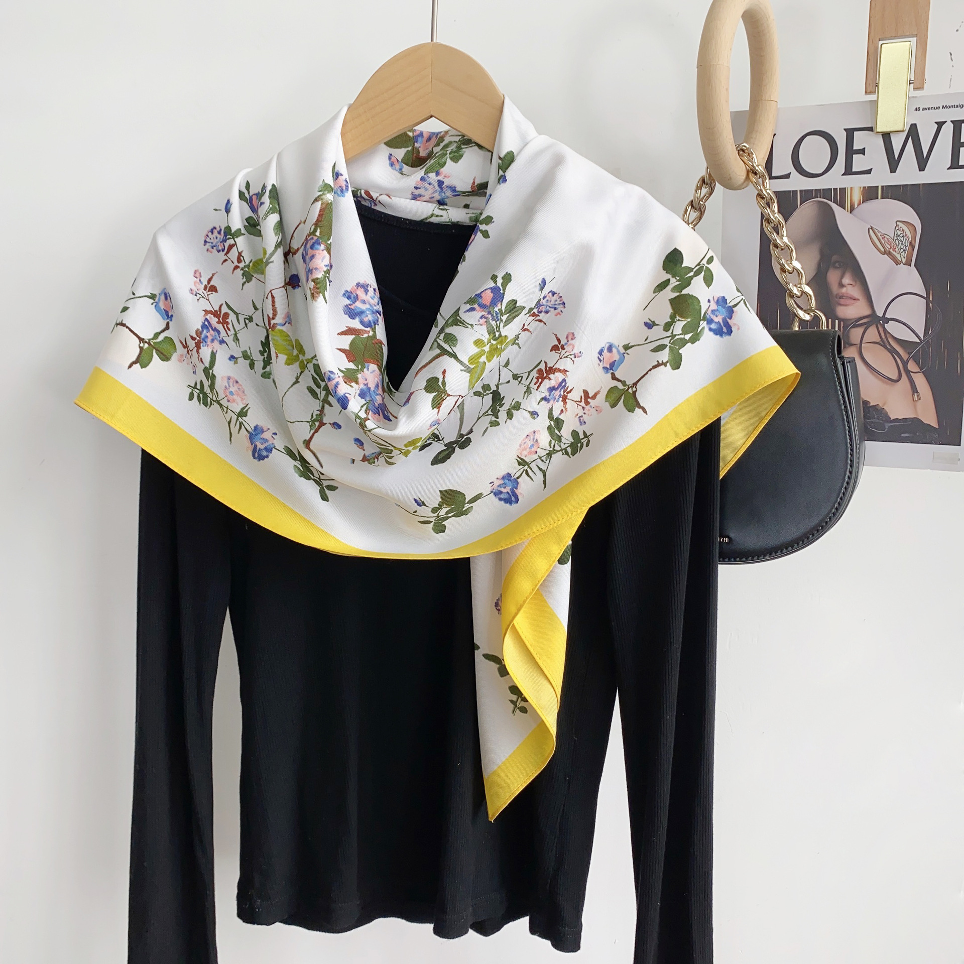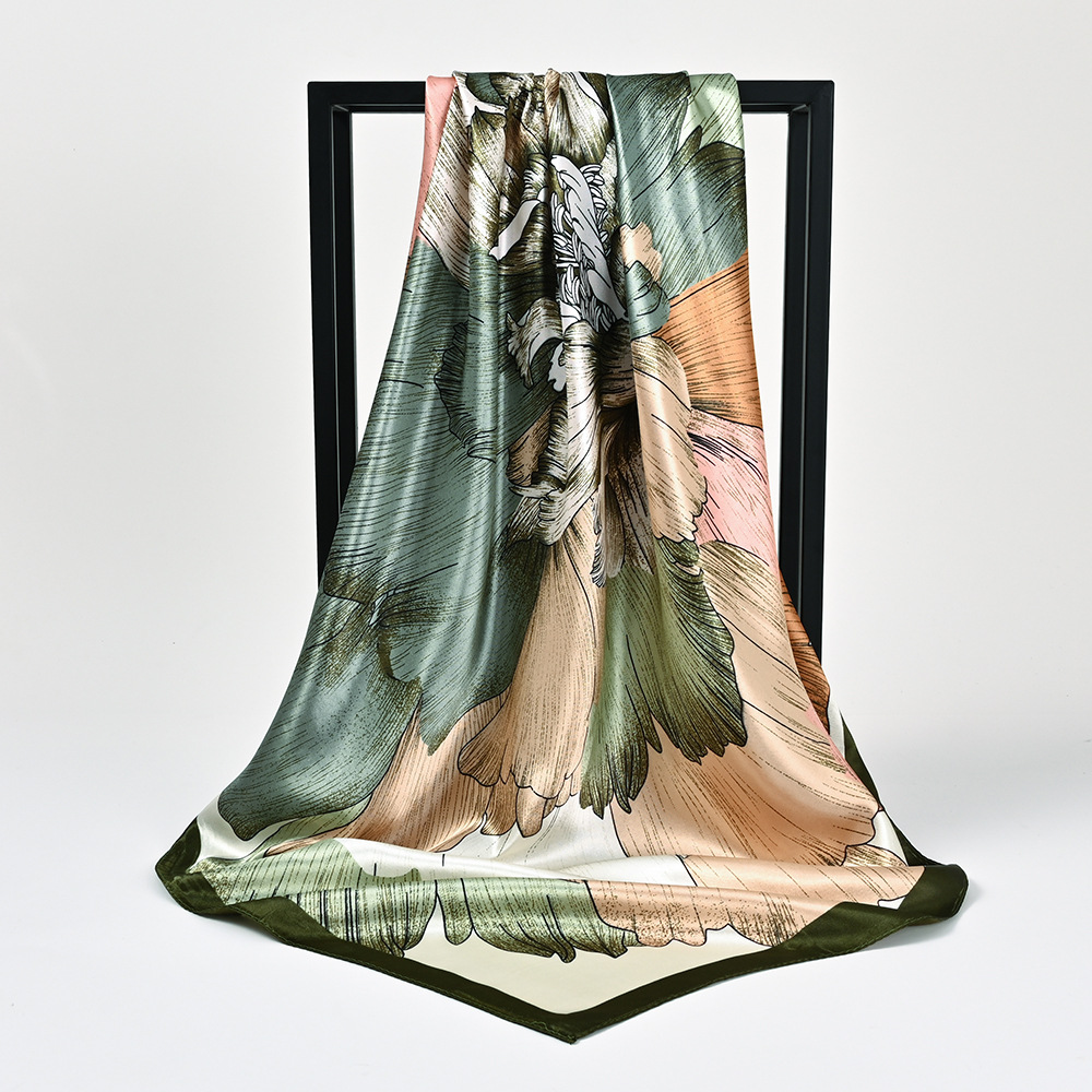 春秋ファッション百合砕花プリントサテン模造シルクマフラー110x110cmスカーフ気質優雅シルクタオル