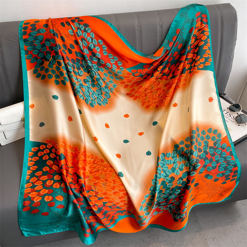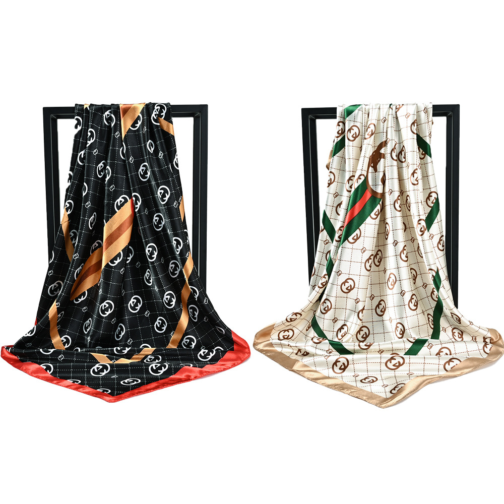 2023海外贈答中国風90*90cm大方巾模擬シルクスカーフストール春秋新卸売り