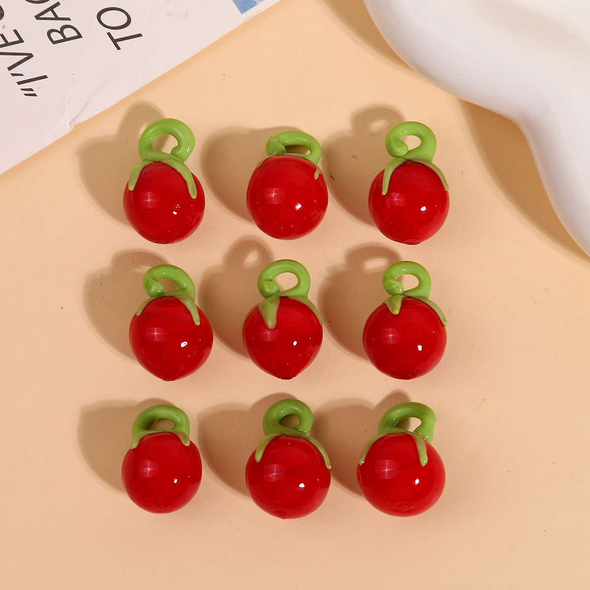 夏の清新な田園風の立体の小さいトマトの瑠璃のペンダントのdiyのブレスレットのネックレスのペンダントのアクセサリーの材料の卸売り