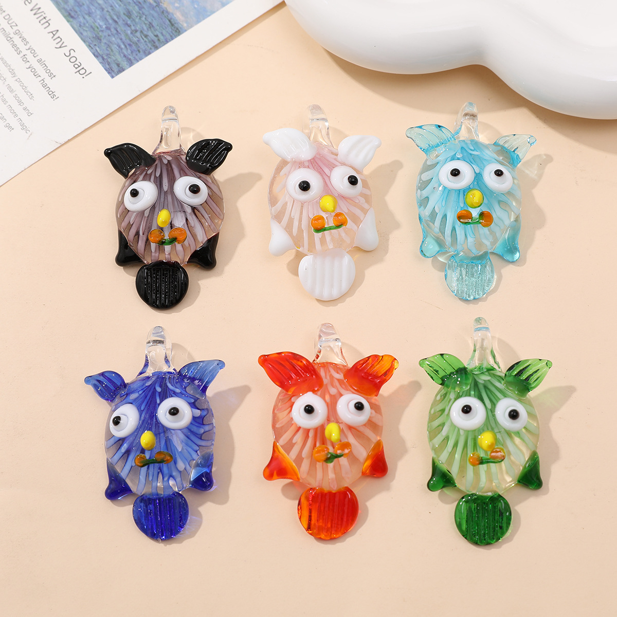 创意卡通搞怪大眼内镶花人脸琉璃吊坠DIY项链服饰挂件材料批发