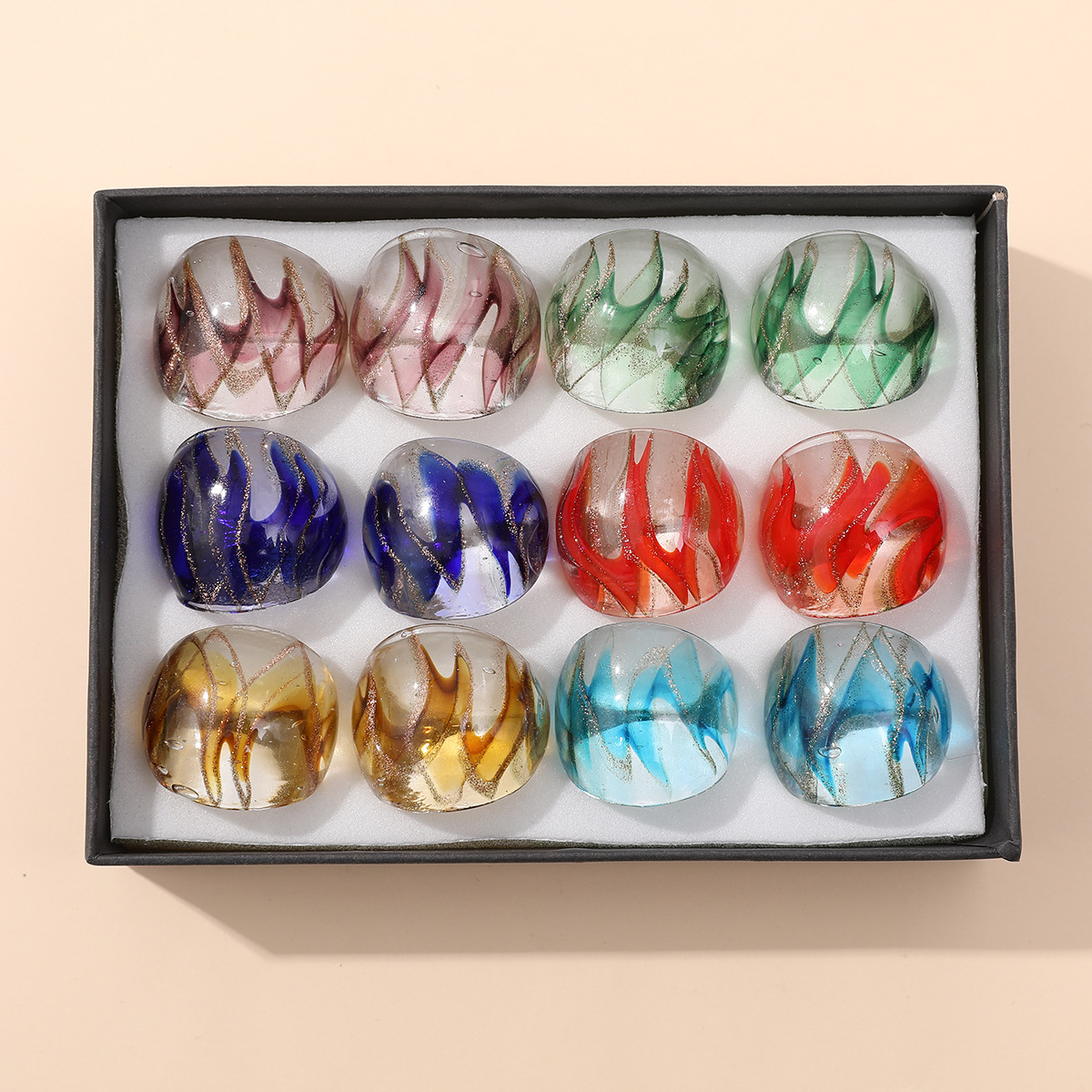韓国版ファッション透明炎模様瑠璃指輪diy個性指輪キーホルダー材料卸売り
