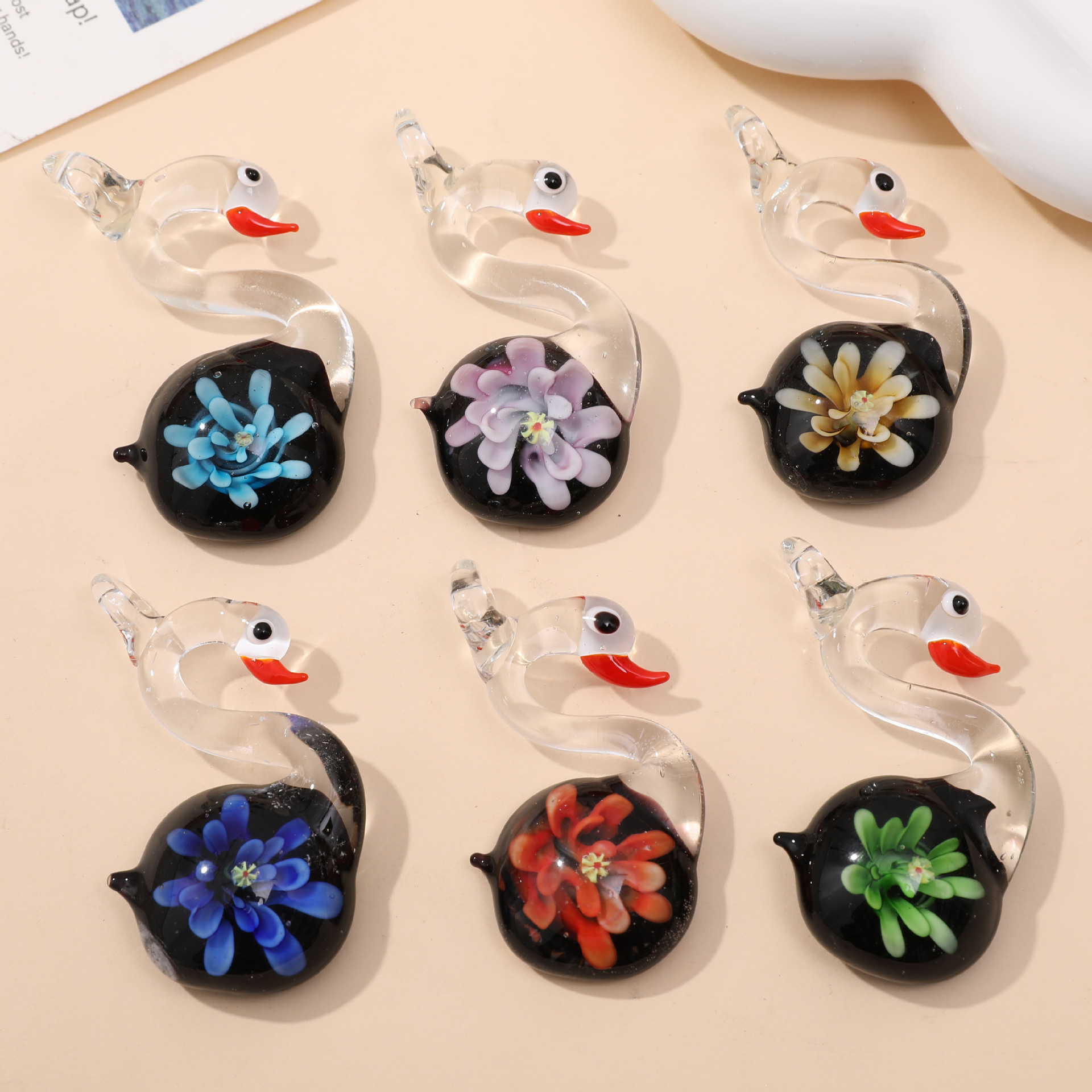 創意的なアニメ動物の黒地の中に花の白鳥の瑠璃のペンダントを入れます。
