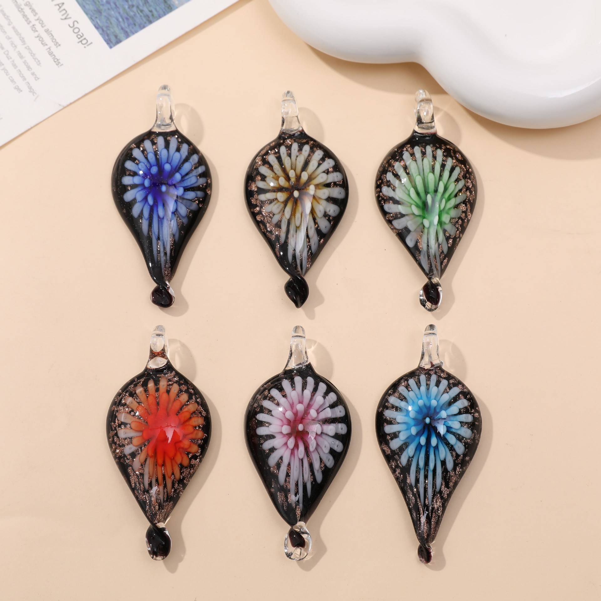 韓国版創意水滴金沙黒地瑠璃内に花の形のペンダントのネックレスのペンダントの材料の卸売りを嵌め込みます。