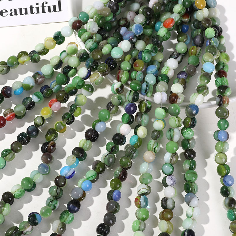 小清新キャンデー感焼花楕円ガラスビーズdiy瑠璃ビーズブレスレットネックレス耳飾り材料卸売り